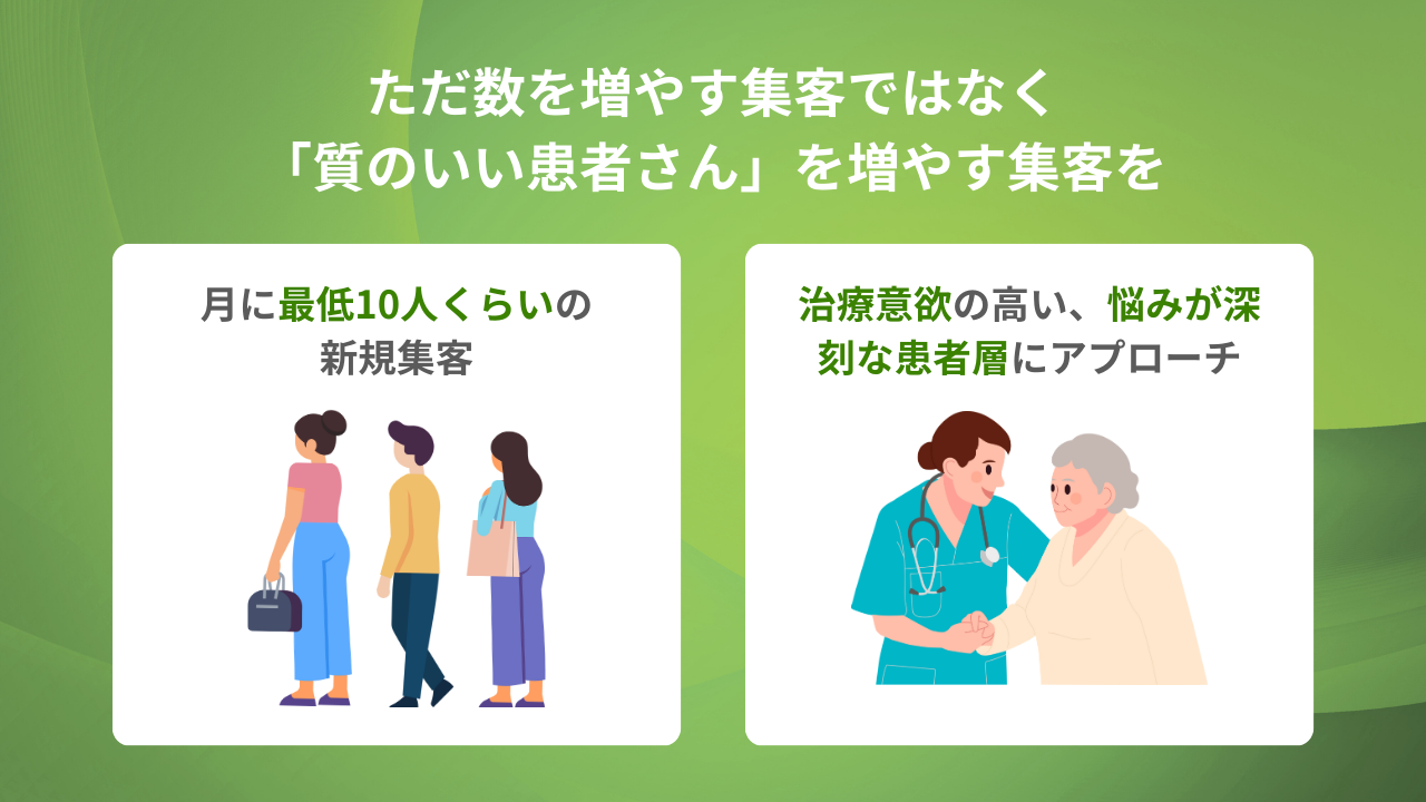 - オファーを施術料金の割引ではなく、初回検査・カウンセリングを無料に